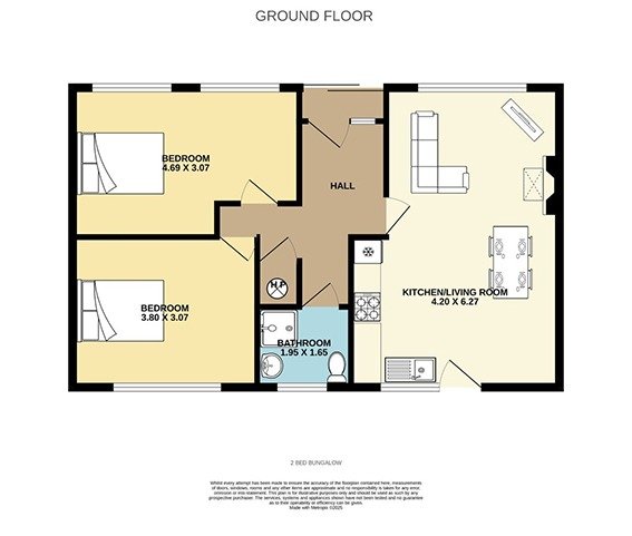 Compact property located in a very quiet area, within walking distance of all amenities. This property would suit someone looking for a starter home or wanting to downsize. The property oozes charm, large windows mean ample natural light throughout the day. Kitchen cum diningroom 4.20m x 6.27m with dark blue fitted units. Solid fuel inset stove with back boiler Bedroom 1 4.69x 3.07 Bedroom 2 1.95 x 1.65 Shower room with PVC panelled wall & ceiling , ceramic tiled floor. (WHB, WC, SHOWER UNIT ) To rear enclosed elevated shrub beds, concrete yard, Garage, To front Tarmac drive, shrub bed.