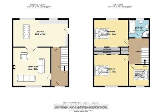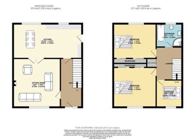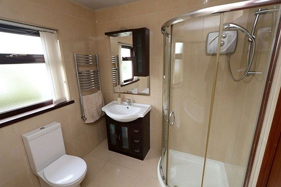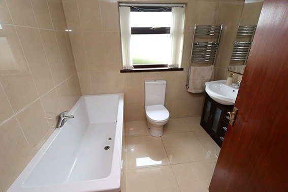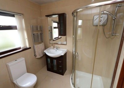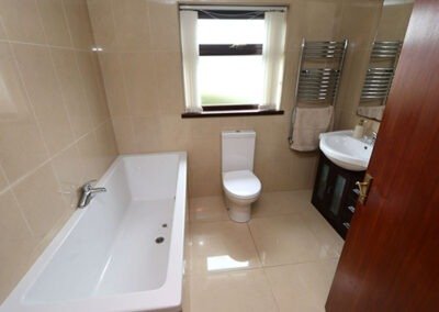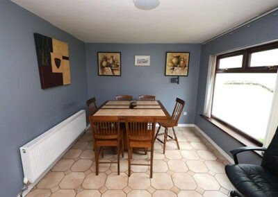 Livingroom 4.70mX4.57m with Walnut flooring and solid fuel inset Boru Stove with B.B, a bright spacious room with large window overlooking front lawn, Kitchen cum Diningroom 6.67m X 3.35m with ceramic tiled flooring , high and low level units large window overlooking rear Garden/ Bedroom 1 4.15m X 3.34m spacious bedroom with carpeted floor again a very bright room with views over rear garden Bedroom 2. 4.15mX 3.84m With white fitted units and carpeted flooring Bedroom 3. 2.83m X 2.52m carpeted flooring Bathroom 2.52m X2.25m Fully tiled with Bath, WHB, WC, Shower unit with Triton electric shower.